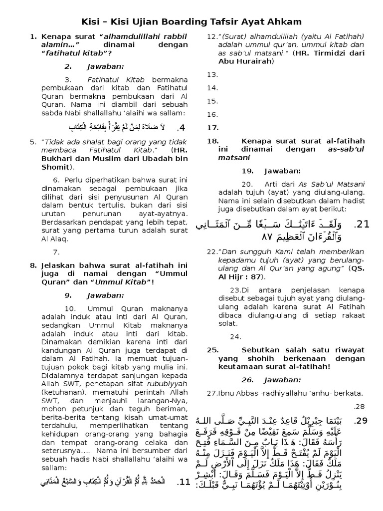 Selanjutnya penulis berterima kasih kepada semua rekan-rekan yang telah sudi kiranya mambantu penyelesaian makalah ini dan. 674 rows Ayat Ahkam dalam al Quran - Al-Quran merupakan salah satu dari sumber hukum bagi umat Islam. Tafsir berasal dari isim masdar dari wajan تفعيل.